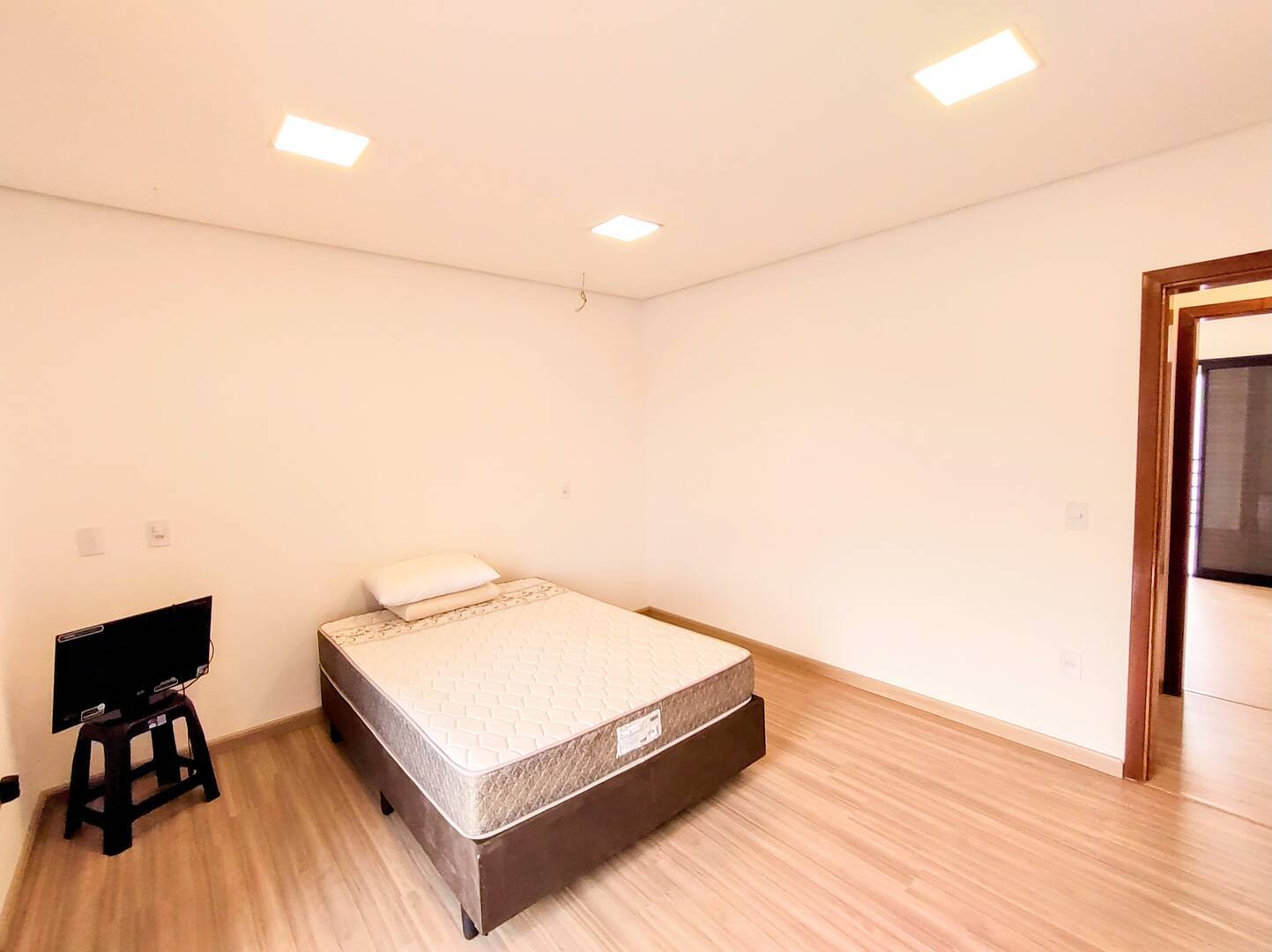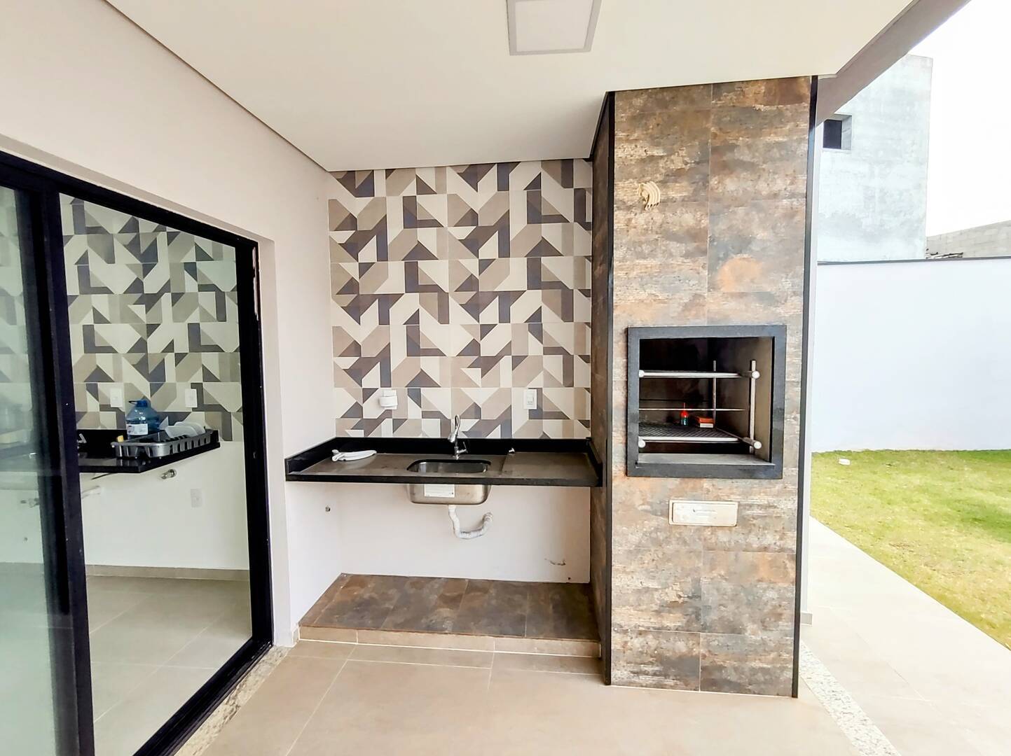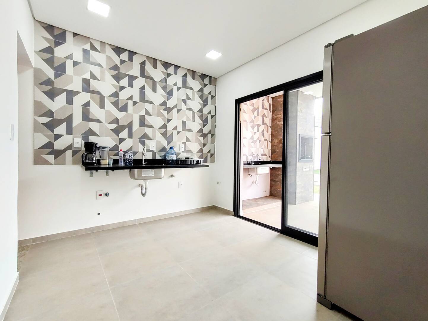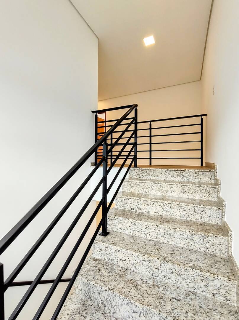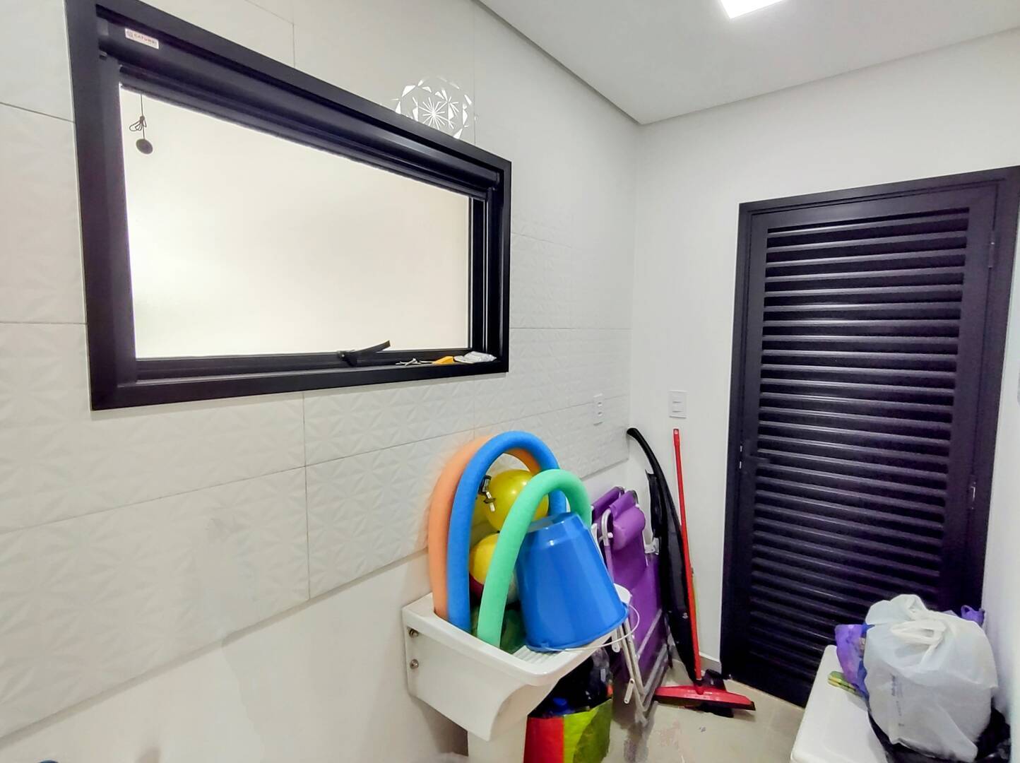 - Formado por hall de entrada, ampla sala de estar integrada com sala de jantar com teto alto, cozinha, lavanderia e área de serviços, lavabo, área gourmet com churrasqueira com chaminé motorizada com integração para sala de estar e cozinha, banheiro externo, depósito e 4 vagas de garagem sendo 2 vagas cobertas.