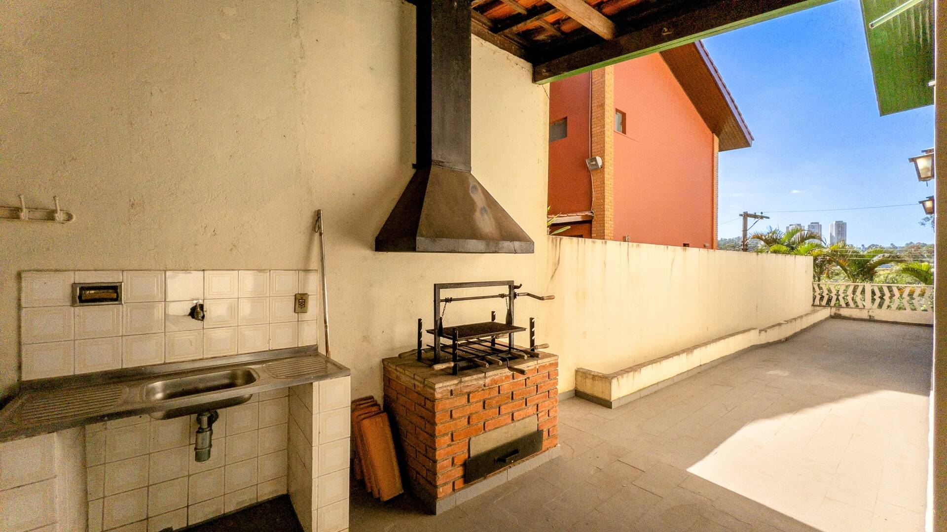 Formado por ampla sala de estar com sacada com vista panorâmica e para o sol da manhã, lavabo, sala de jantar, ampla cozinha, área de serviços, suíte reversível a escritório, sala, lavanderia e área de serviços, área gourmet com churrasqueira, área de varal, amplo quintal e jardim com árvores no fundo.